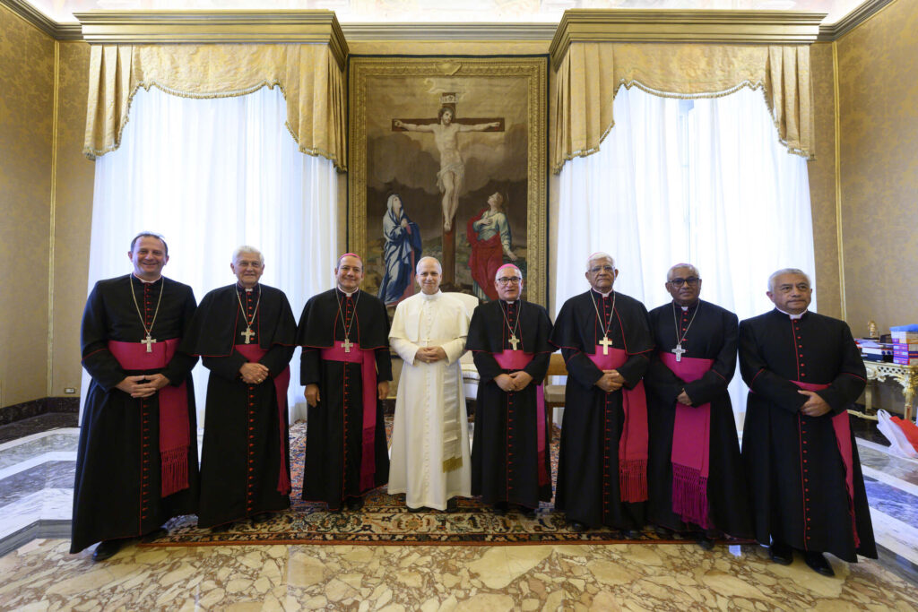 La delegación estuvo conformada por Mons. Jorge Izaguirre Rafael, Obispo de Chosica y Primer Vicepresidente de la CEP; Mons. Luis Alberto Barrera Pacheco, Obispo del Callao y Segundo Vicepresidente; y el Rvdo. P. Guillermo Inca Pereda, Secretario General Adjunto. Durante el encuentro con el Pontífice, Mons. Barrera obsequió un hermoso cuadro de la Virgen del Carmen de la Legua, que representa el amor del pueblo chalaco a la Virgen María, y el P. Inca entregó una imagen de la Virgen de la Ternura.