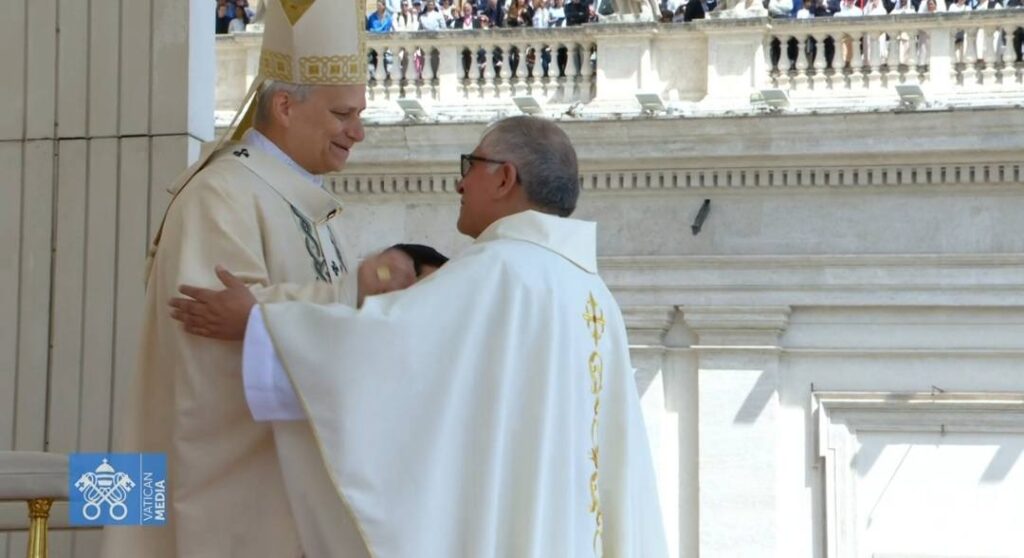 Obispo del Callao participa en el rito de obediencia durante la Misa de Entronización del Papa León XIV.