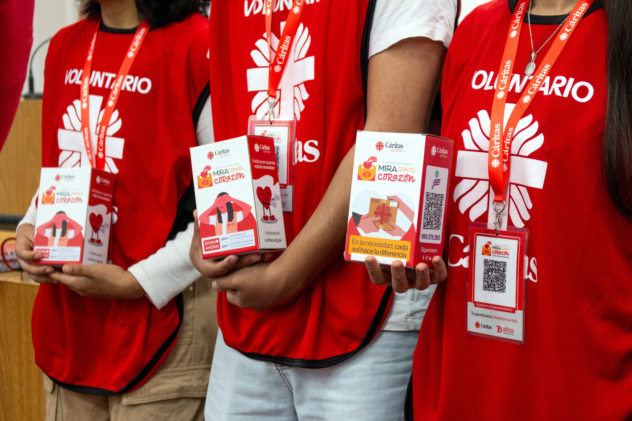 Podrán identificarse por su chaleco con el logo de Cáritas del Perú, una credencial con código QR y su alcancía oficial.